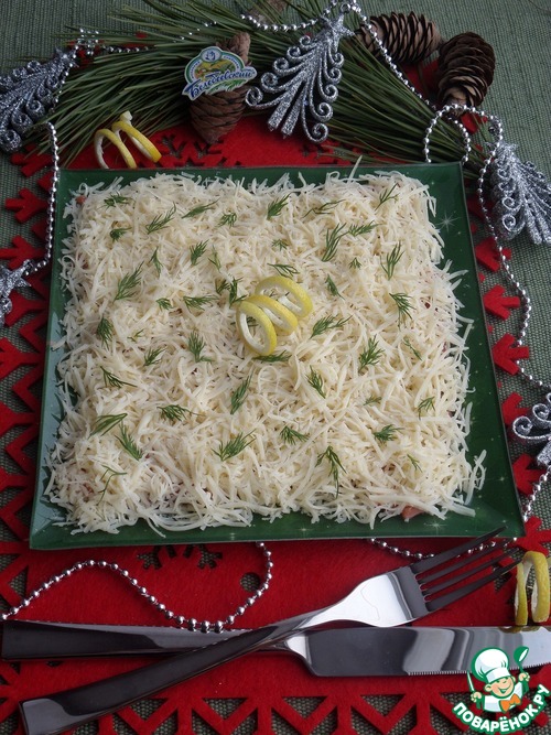 Очень простое и быстрое в приготовлении блюдо бесспорно добавит свою "изюминку" на праздничный стол. Закуска отлично подойдет к крепким напиткам. Проверено неоднократно. Пробуйте! С Новым Годом!