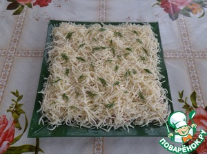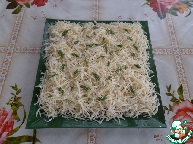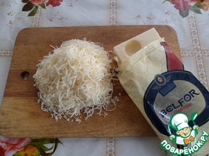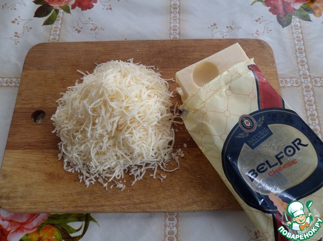 Сыр трем на мелкой терке. Я использую сыр "BELFOR" Белебеевского молочного комбината. Очень вкусный и качественный продукт.
