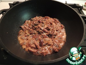 Нужно нагреть сковородку так, чтобы мяско шипело и шкварчало. Непрерывно помешивая жарим пару минут. -