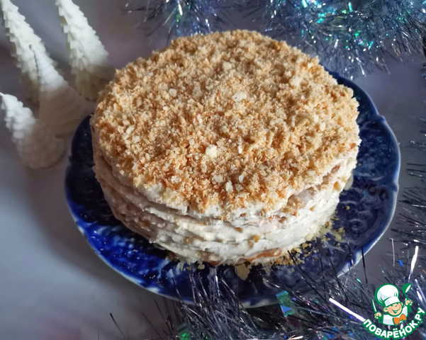 Это один из любимых тортиков моего папы, и я решила порадовать его на Новый год. Слегка хрустящий торт со сливочным вкусом и орешками. Угощайтесь, друзья! С наступающим Рождеством всех!