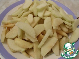 Яблоки очистите и тонко нарежьте.