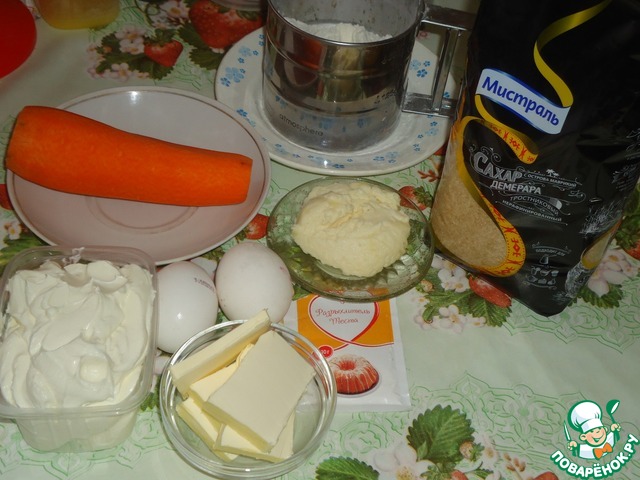 Ингредиенты для «Морковный кекс с творожными шариками»: