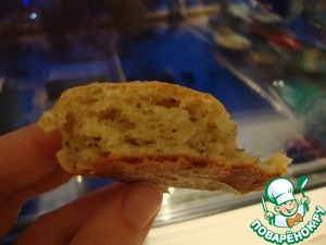 Тесто увеличивается в объёме очень прилично, у меня в этот раз некоторые булочки даже слепились между собой. Вот такая булочка в разломе. Угощайтесь!