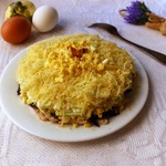 3 слой. Мелко порубить яйца. Смазать майонезом.