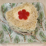 2 слой. Если у вас будет сухой чернослив, то необходимо предварительно залить его горячей водой для размокания. У меня был мягкий. Чернослив порезать соломкой. Смазать майонезом.