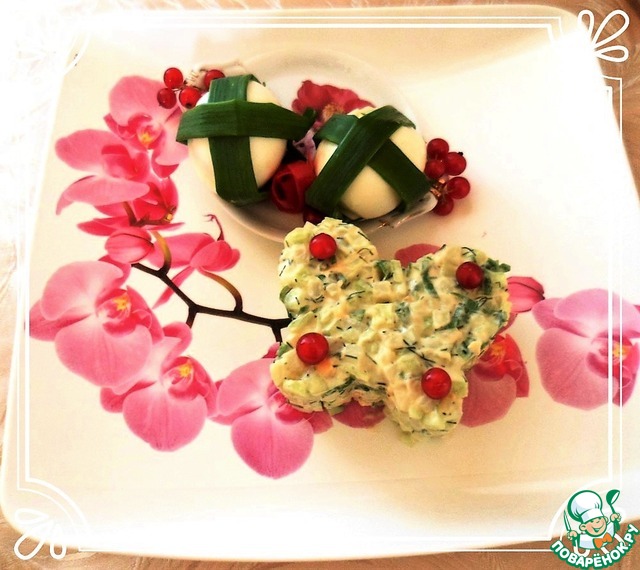 Свежий овощной салат в яичных половинках - оригинально, вкусно и не банально. Угощайтесь!