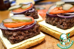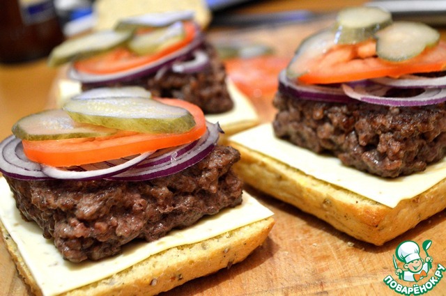 Делала по рецепту котлетки (что, как и сказано, самое главное в блюде). Очень вкусно! Жаль, что не так компактно как в покупных бургерах, но будем работать, совершенствоваться))