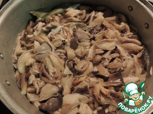 Как только маринад с грибами закипит накрываем кастрюлю крышкой и уменьшаем огонь до минимума. Варим 25 минут