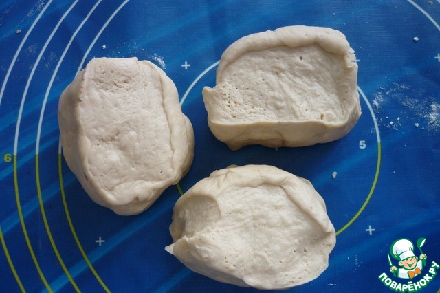 Тесто обминаем и делим на 3 части.