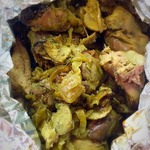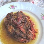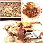И во-вторых, духовка при установке на 200 видимо температуры не давала, через 20 минут с формы сняли фольгу - там всё плавает в соке. Пришлось спасать - опять в фольгу и снова на 20 минут.