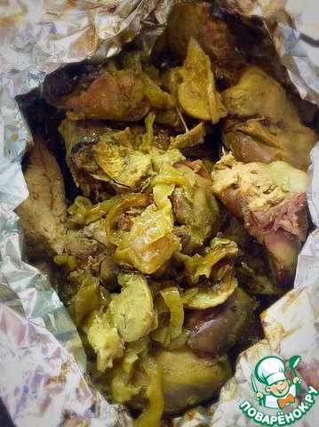 Рецепт «Ароматная куриная печень, запеченная в фольге»: