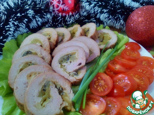 Сочное и нежное мясо индейки с начинкой из киви и сыра. Это блюдо будет прекрасно смотреться на праздничном столе.