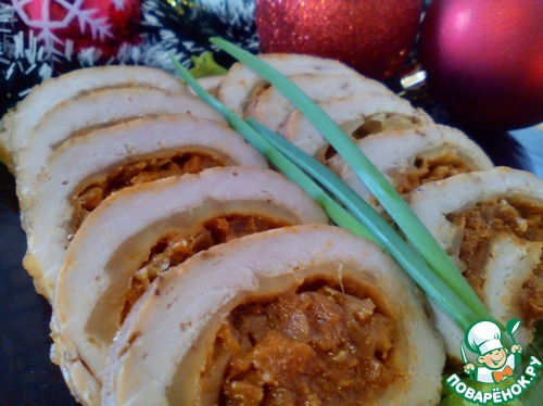 Рецепт «Рулет из индейки с курагой и сыром»: