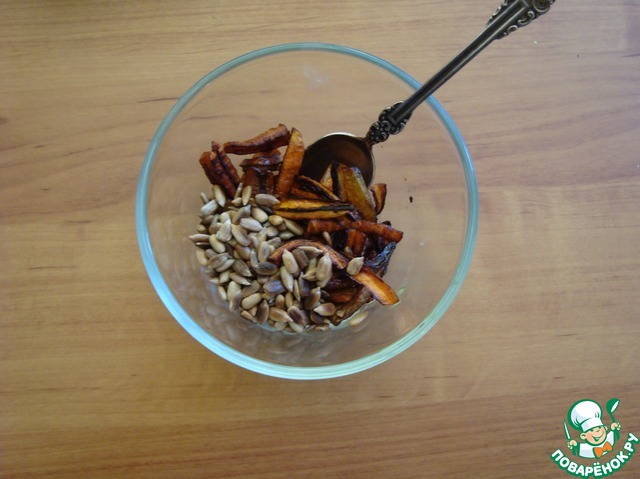 Соединяем семечки с морковью и даём остыть. Занимаемся другими продуктами.