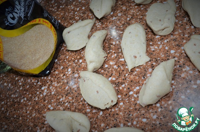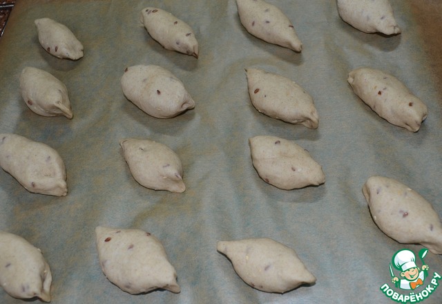 • А из оставшегося теста будем печь "Зерно". Тесто разделить на кусочки по 40 - 45 г..