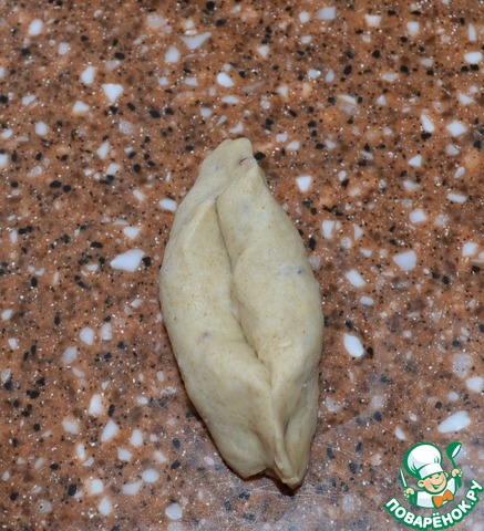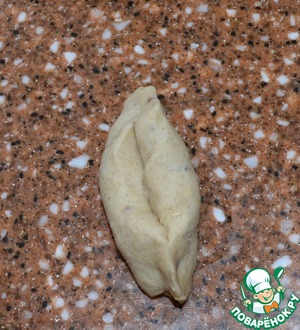 • Расплющить его в овал, с каждой стороны подвернуть.
