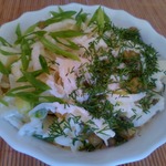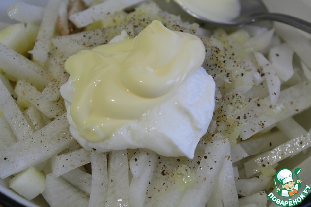 • Добавить заправку - я брала майонез пополам с йогуртом.