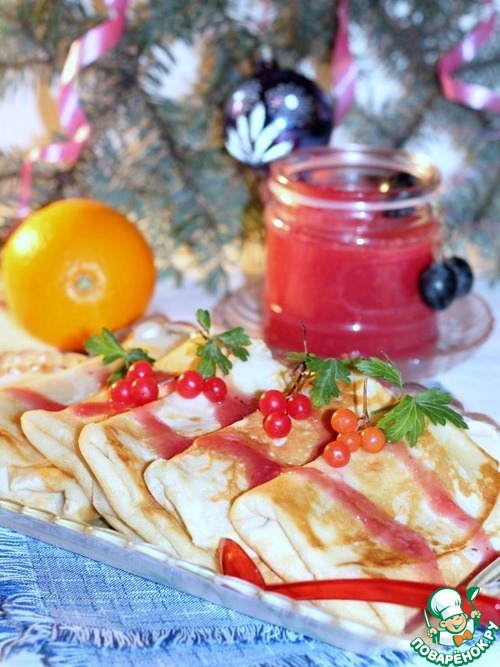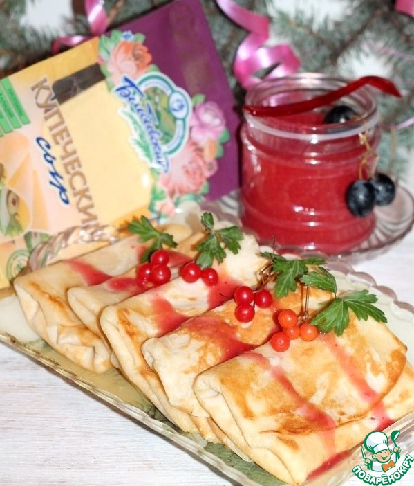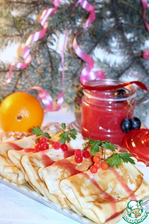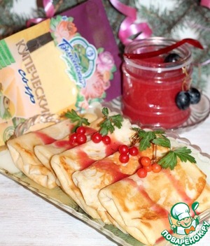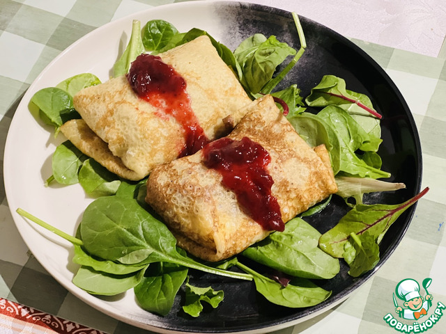 Рецепт «Ветчинно-сырные блинчики с фруктовым соусом»: