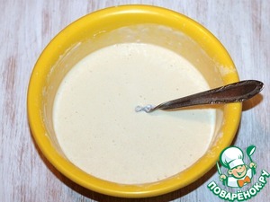 1. Смешиваем просеянную муку с кефиром, яйцом, добавляем сахар и замешиваем тесто.