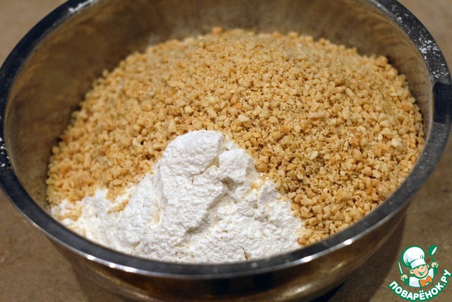 Для этого арахис (жареный соленый) необходимо измельчить. -