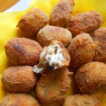 Настоящие испанские крокеты - это фактически жареный густой бешамель - маленькие закусочки, хрустящие снаружи и нежнейшие, мягкие внутри. Это любимое угощение испанских детей, и ни один детский стол не обходится без них. Удобны тем, что их можно (и даже нужно) приготовить заранее и заморозить, так они будут лучше жариться и сохранят форму. В крокетную массу можно добавлять ветчину, бекон, овощи. Для данного рецепта я выбрала любимое многими сочетание курицы, грибов и сыра. Крокеты отлично подойдут для фуршетного стола.