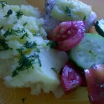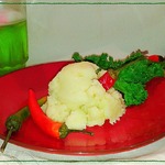 1. когда варите картовель, добавте кубик с приправами куриный - приятный цвет обеспечен.