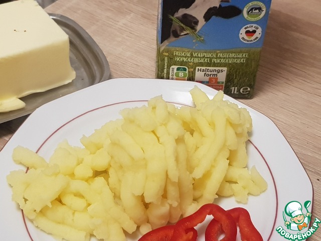6. Сливаем жидкость, добавляем сливочное масло и горячее кипяченое молоко