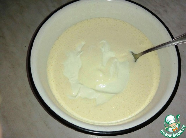 Вливаем 500 грамм сметаны, остальное оставляем на крем