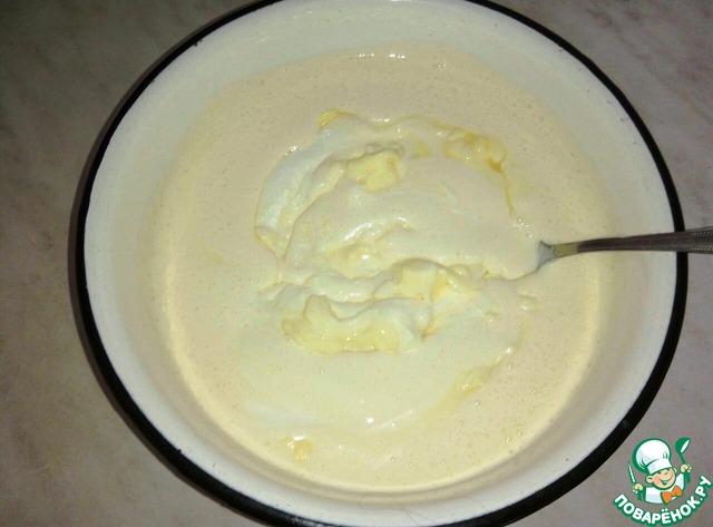 У меня крем получился жидкий, сметана, наверное, из за её качества после взбивания стала жидкой, поэтому растеклась по коржу.