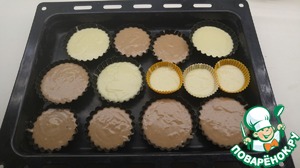 Затем получившееся тесто выкладываем в формочки, до краев не заполняем. Увы, у меня было всего 3 хороших формочки. Остальные не подходят для капкейков своей формой.