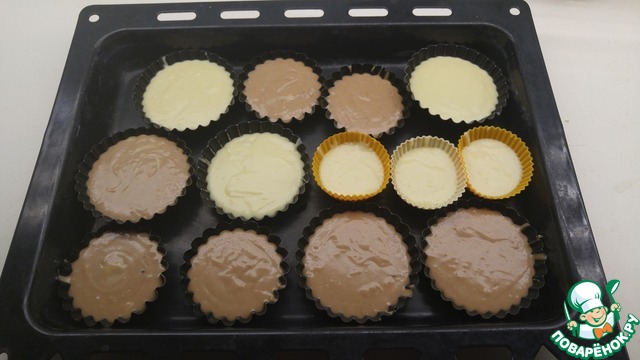 Я разделила тесто на 2 половины и в одну добавила несладкого какао.