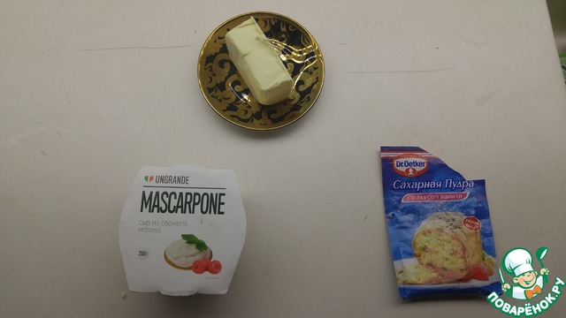 Пока готовится тесто, сделаем крем для наших капкейков. Ингредиенты для крема на фото