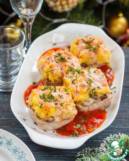 Для праздничного стола здОрово еще и потому, что обычно (во всяком случае, на моем опыте) народ поедает мясные блюда, зачастую игнорируя гарнир (если только не подать порционно). А здесь - 2 в одном, и не перегружено по количеству. Спасибо за идею!