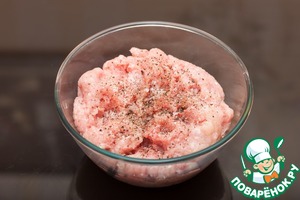 Фарш (у меня индейка, но можно брать любой) посолить, поперчить, хорошо вымешать.