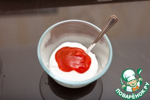 Сметану смешать с кетчупом и развести небольшим количеством воды, чтобы этим соусом можно было легко полить котлеты сверху.