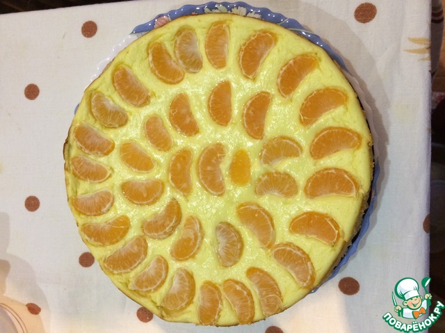 • Мандарины чистим, разбираем на дольки и выкладываем на начинку.