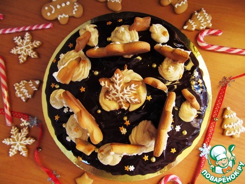 Украсить торт имбирным печеньем. Желательно убрать минут на 20 торт в холодильник, чтобы ганаш застыл.
