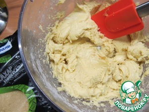 Затем добавить яйцо, муку, ванильный экстракт, крахмал (иил заменить его на добавочную порцию разрыхлителя), разрыхлитель. Перемешать. Получится пышная, мягкая масса.