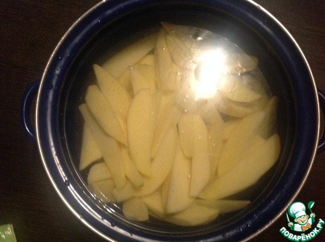 Картофель очистить и нарезать ломтиками.