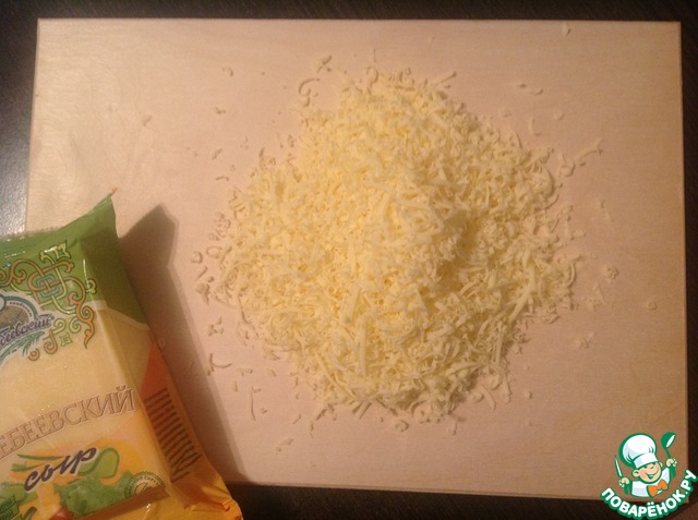 Сыр натереть на мелкой тёрке (я использовала сыр Белебеевский).