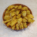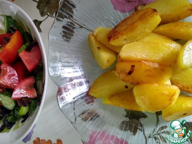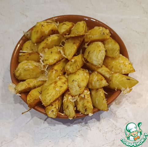 Противень застелить пергаментом или бумагой для выпечки. Выложить картофель. Выпекать в духовке, нагретой до 180-190 градусов до готовности.