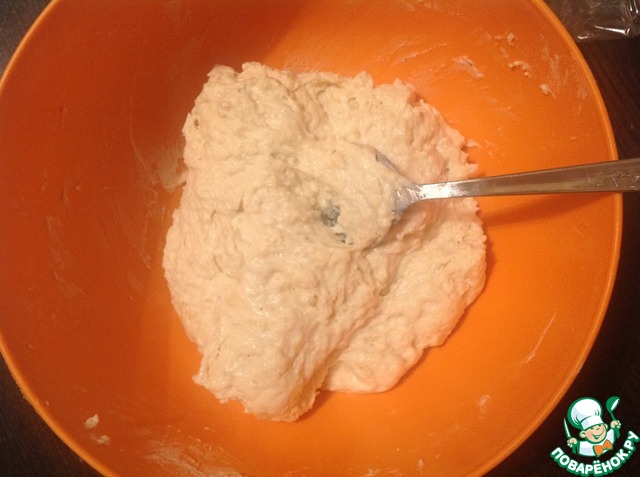 Вмешать в тесто натёртый на терке сыр. Я использовала сыр "Мраморный" МК Белебеевский.