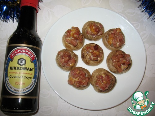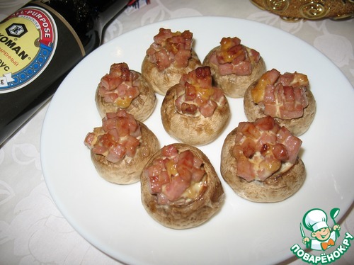 Эта закуска наверняка придется по вкусу сильной половине человечества, ведь многие из них любят ветчину. И в целом сочетание ветчины с сочными шампиньонами, думаю, никого не оставит равнодушным.