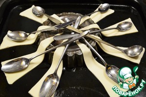 Чтобы тесто на самой ложечке не поднималось, нужно сверху придавить железными ложечками.