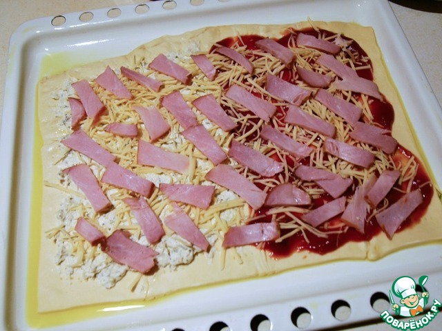 Выкладываем ветчину.