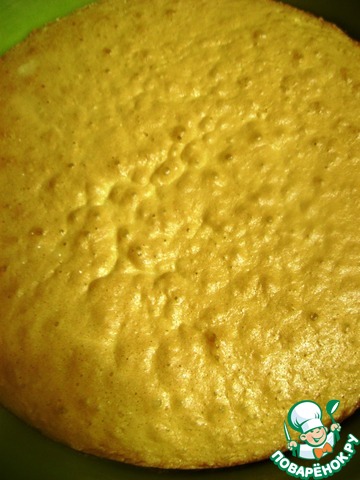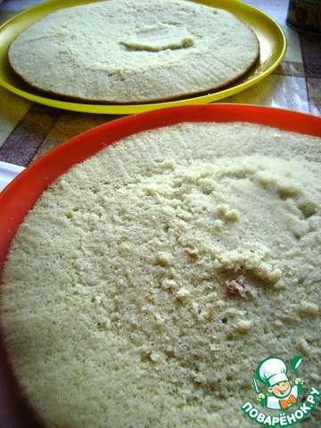 Выбрать светлый корж поудачнее и разрезать его пополам.