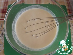 Смешать кефир, сметану, яйцо, соль, соду.