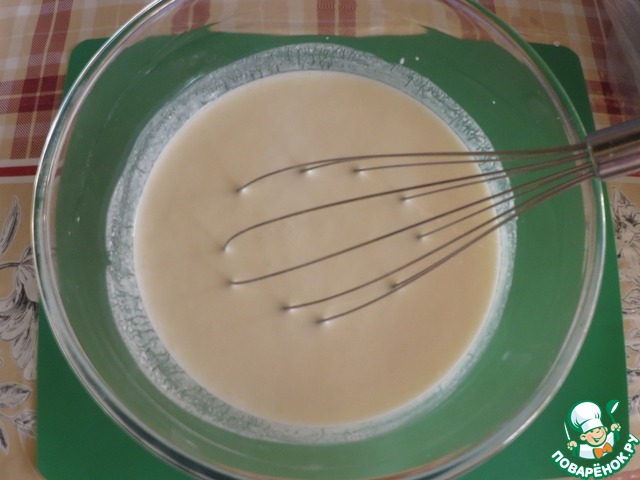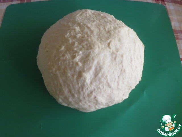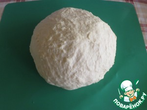 Всыпать стакан муки, хорошо перемешать, чтобы не было комочков, постепенно добавить остальную муку. Муки может уйти больше или меньше, т. к. она у всех разная. Тесто не должно быть слишком крутым, оно получается немного липким.