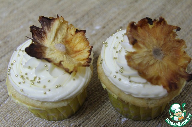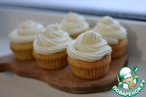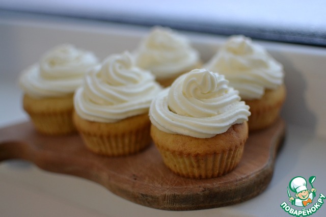 Наносим крем на остывшие кексы. Можно кушать и сразу, но можно и отправить их "отдыхать" на несколько часов в холодильник.