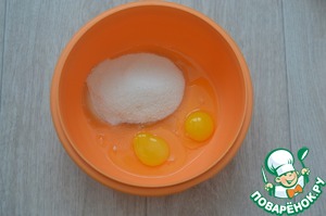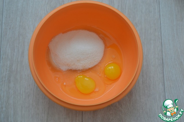 В кастрюлю или глубокую миску добавить сахар и яйцо (иногда кладу 2 яйца, если маленькие).
